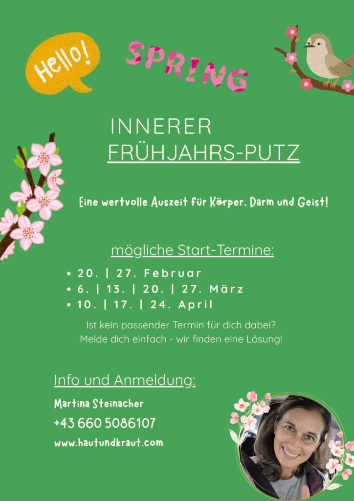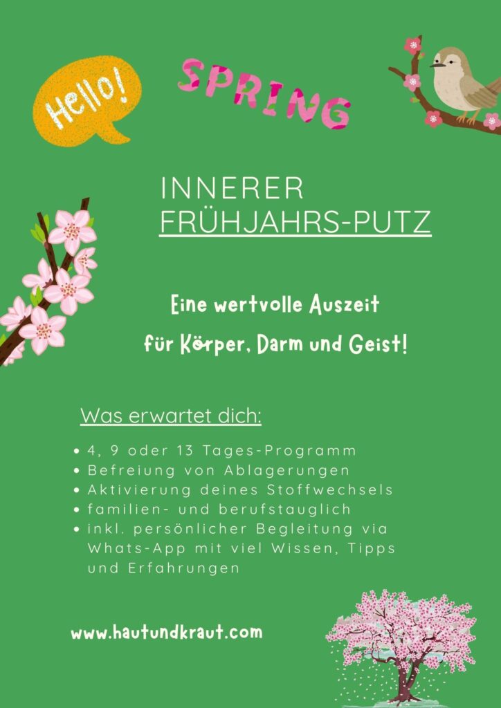 Möchtest du gleich loslegen mit der inneren Reinigung? Sehr gerne! Hier findest du alle aktuellen Termine. Melde dich in jedem Fall bei mir an, um deinen Platz zu reservieren. Info: Du kannst natürlich auch zu deinem individuellen Wunsch-Termin beginnen!